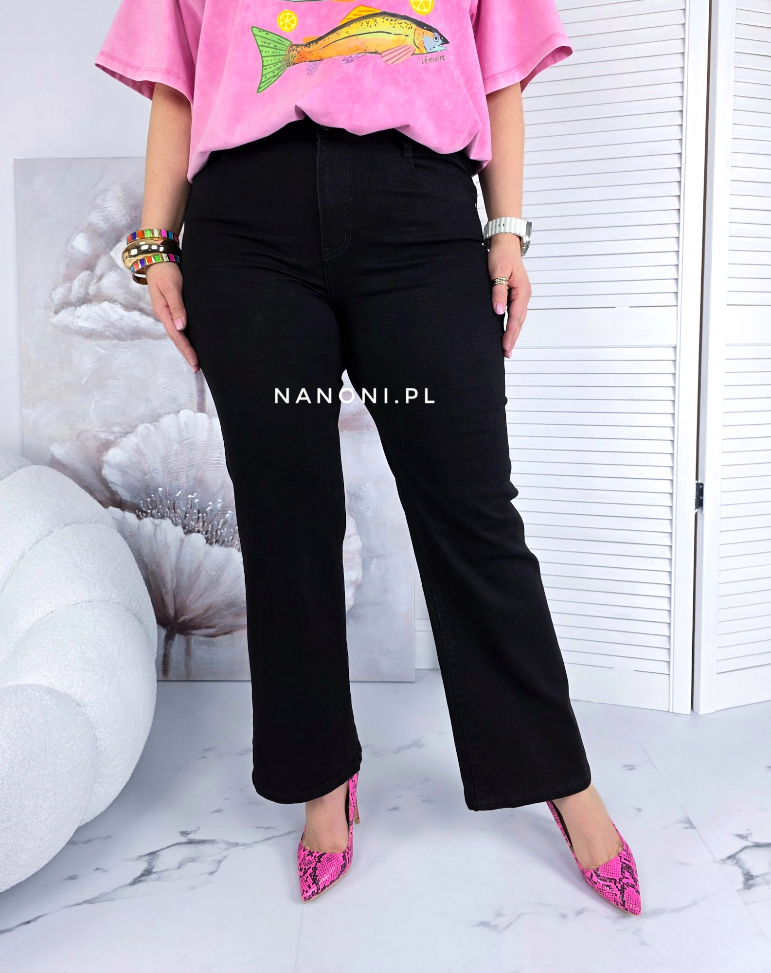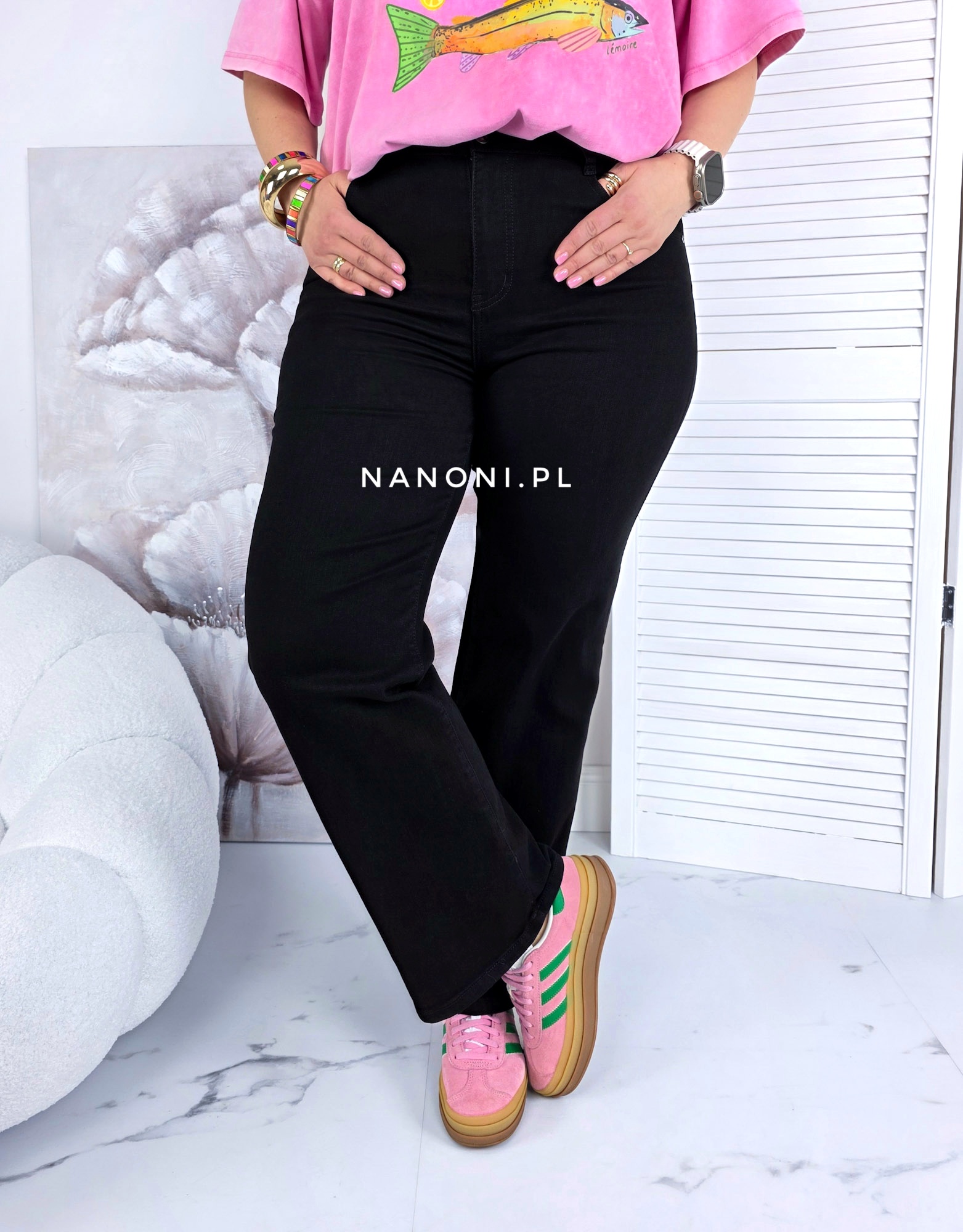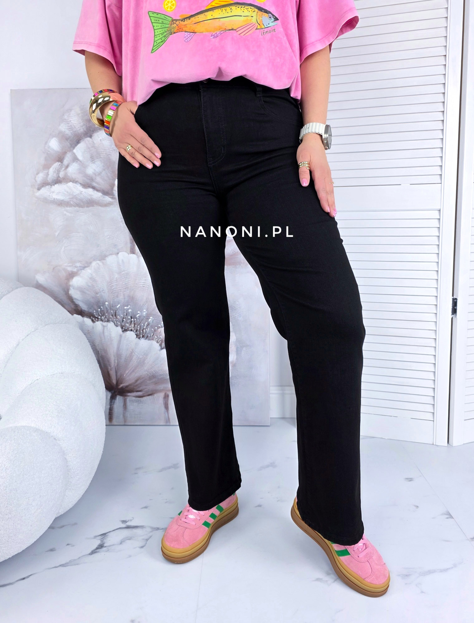 Spodnie Jeansowe proste szerokie plus size czarne, z wyższym stanem.