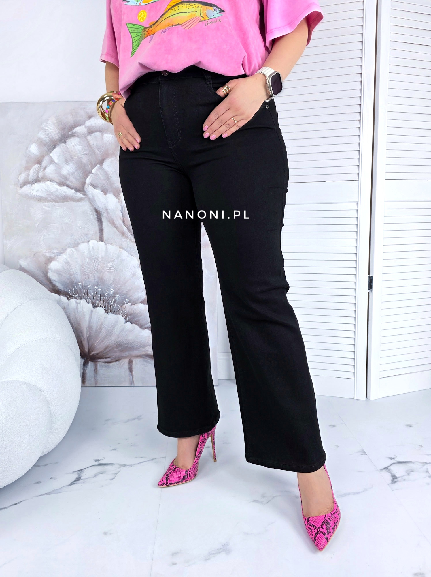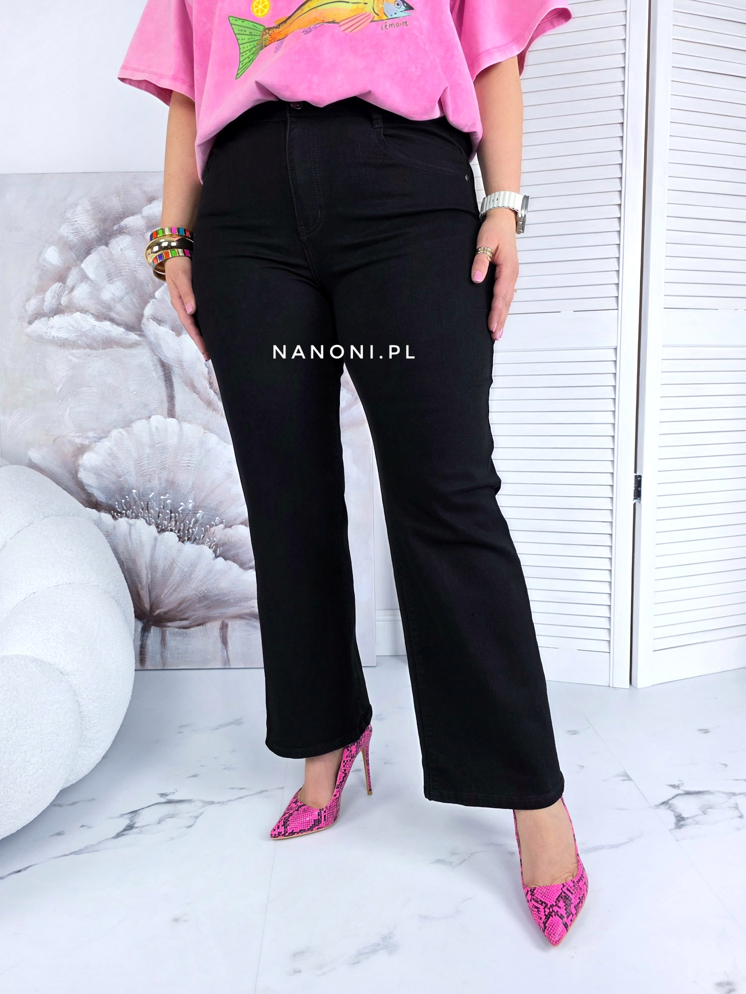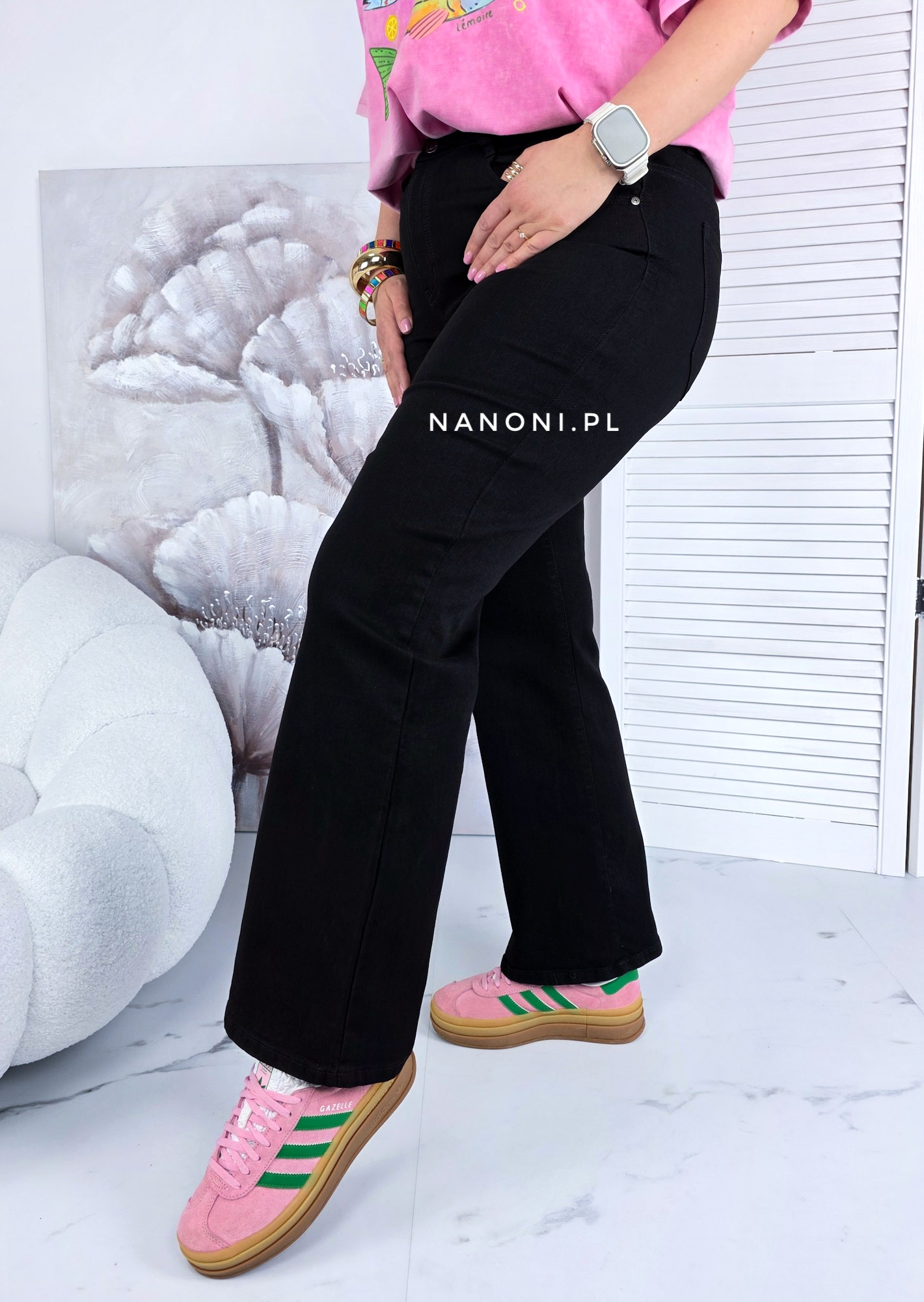Spodnie Jeansowe proste szerokie plus size czarne, z wyższym stanem.
