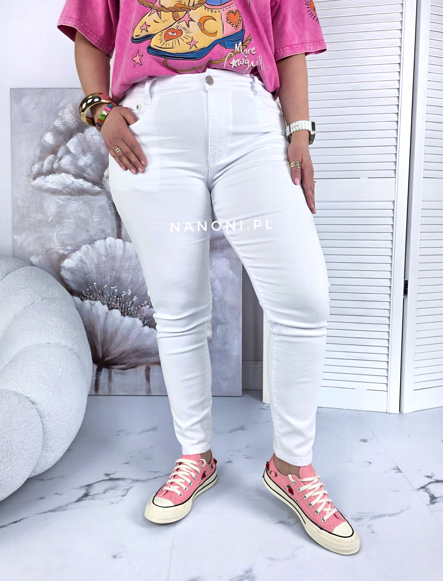 Spodnie jeansy białe plus size klasyczne rurki.