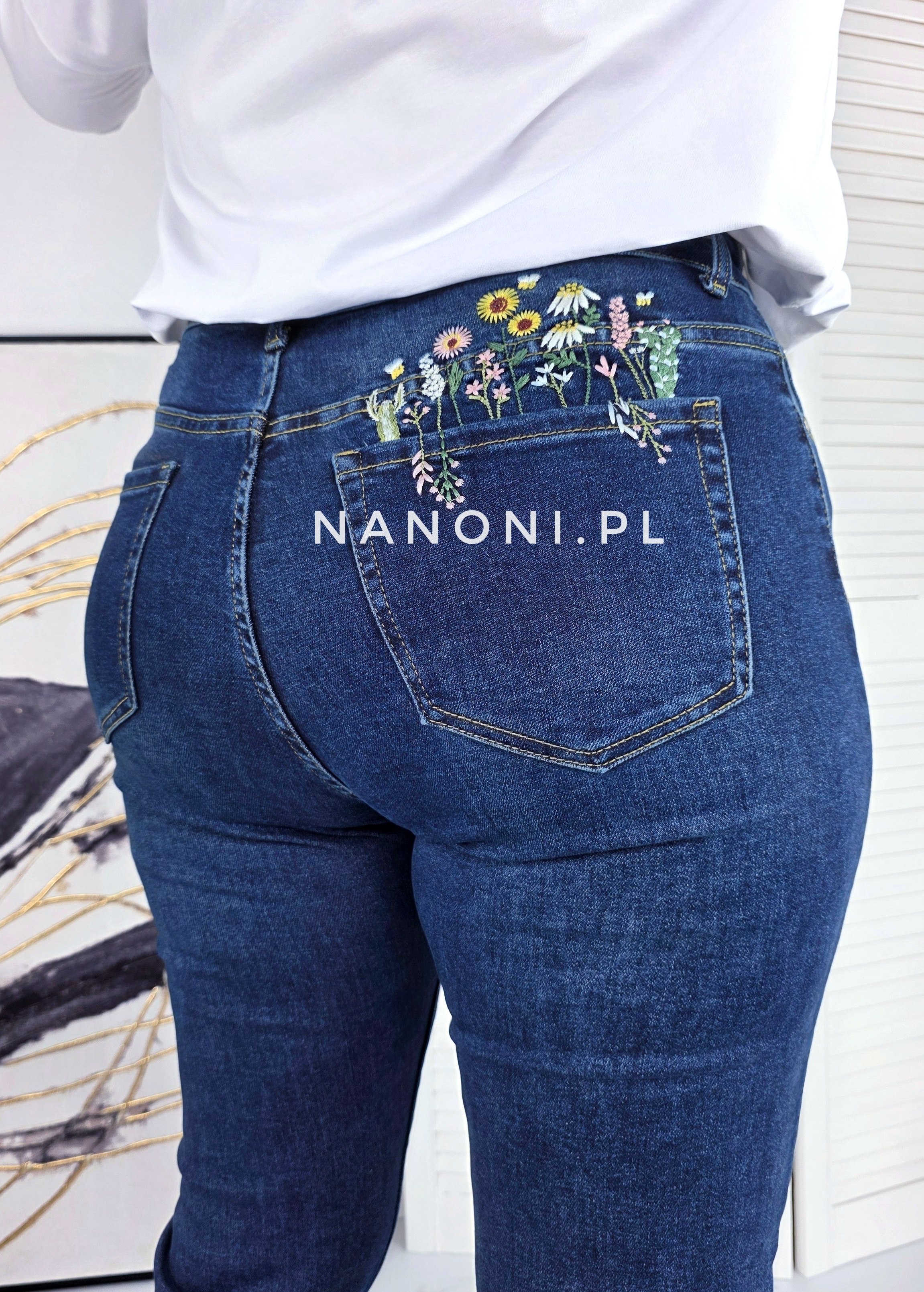 Spodnie są ozdobione naszytymi kwiatkami z tyłu.