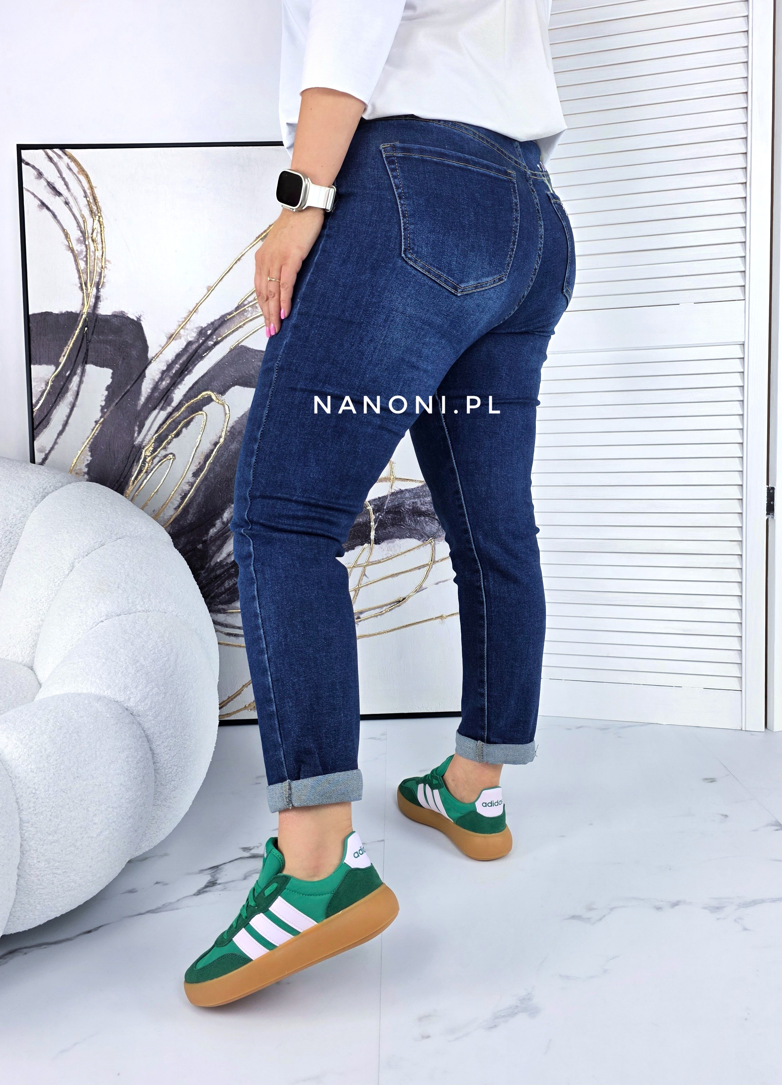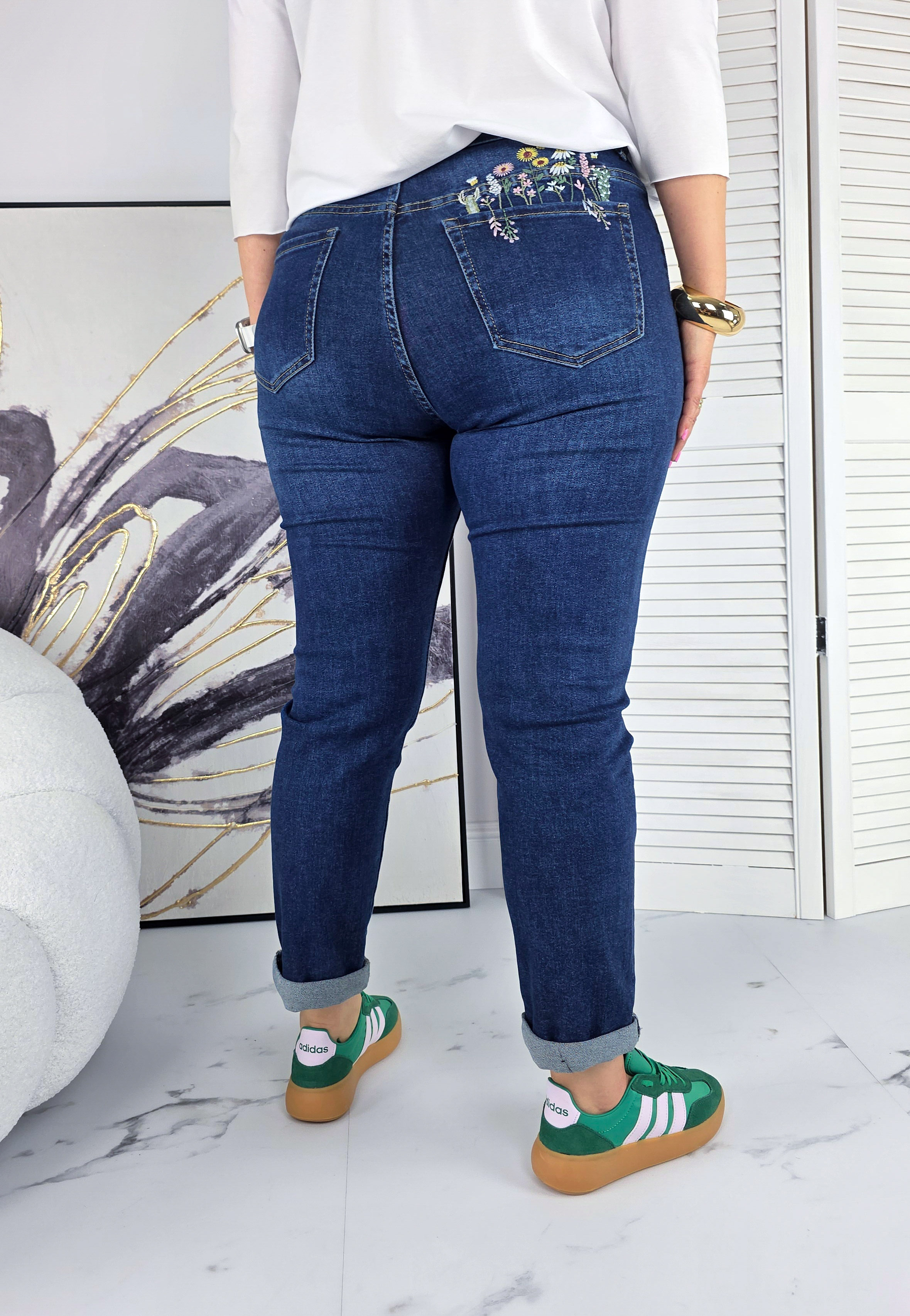 Spodnie Jeansy Plus Size Granatowe Mom Fit 44-54 z Haftem Aida