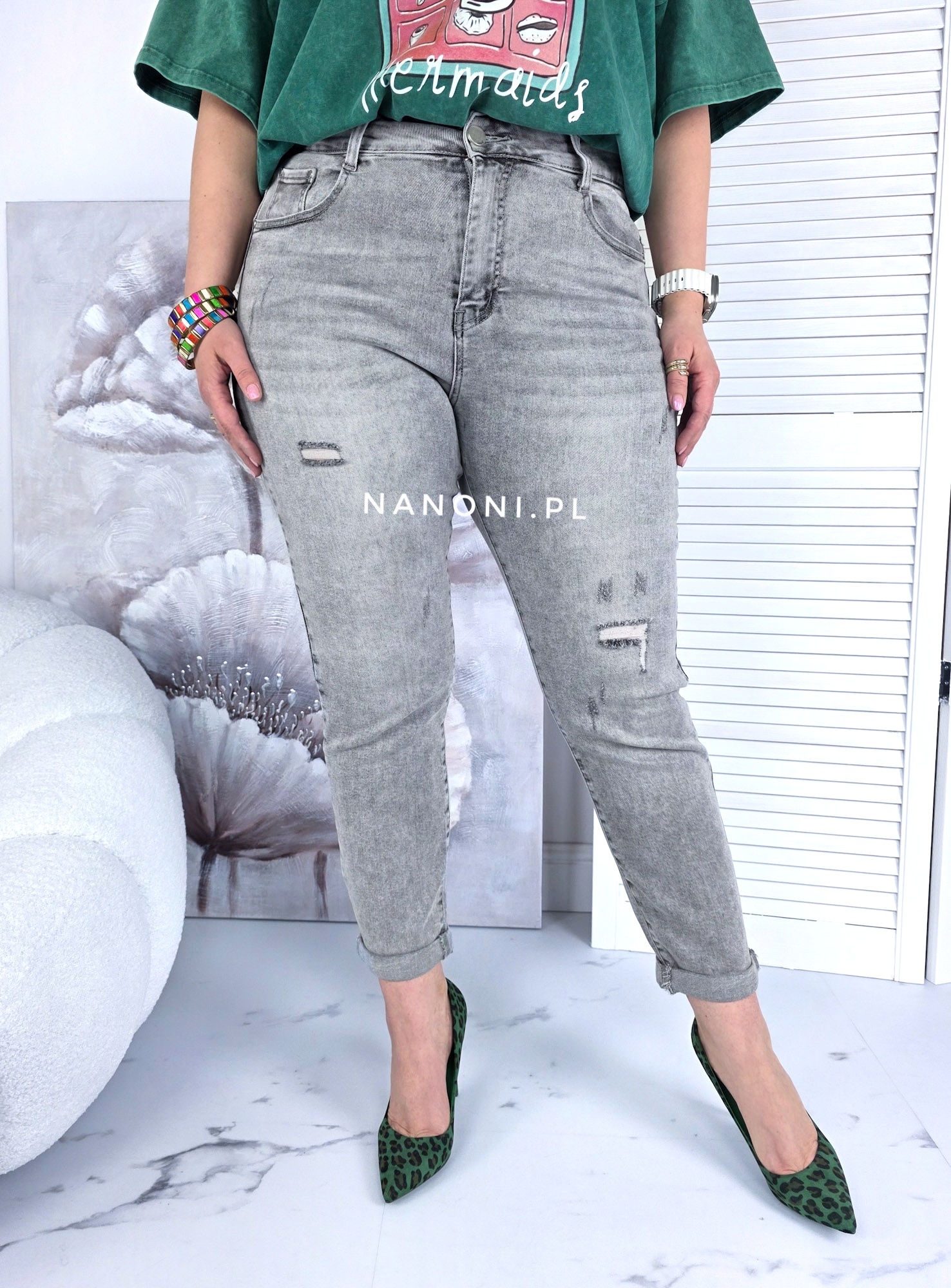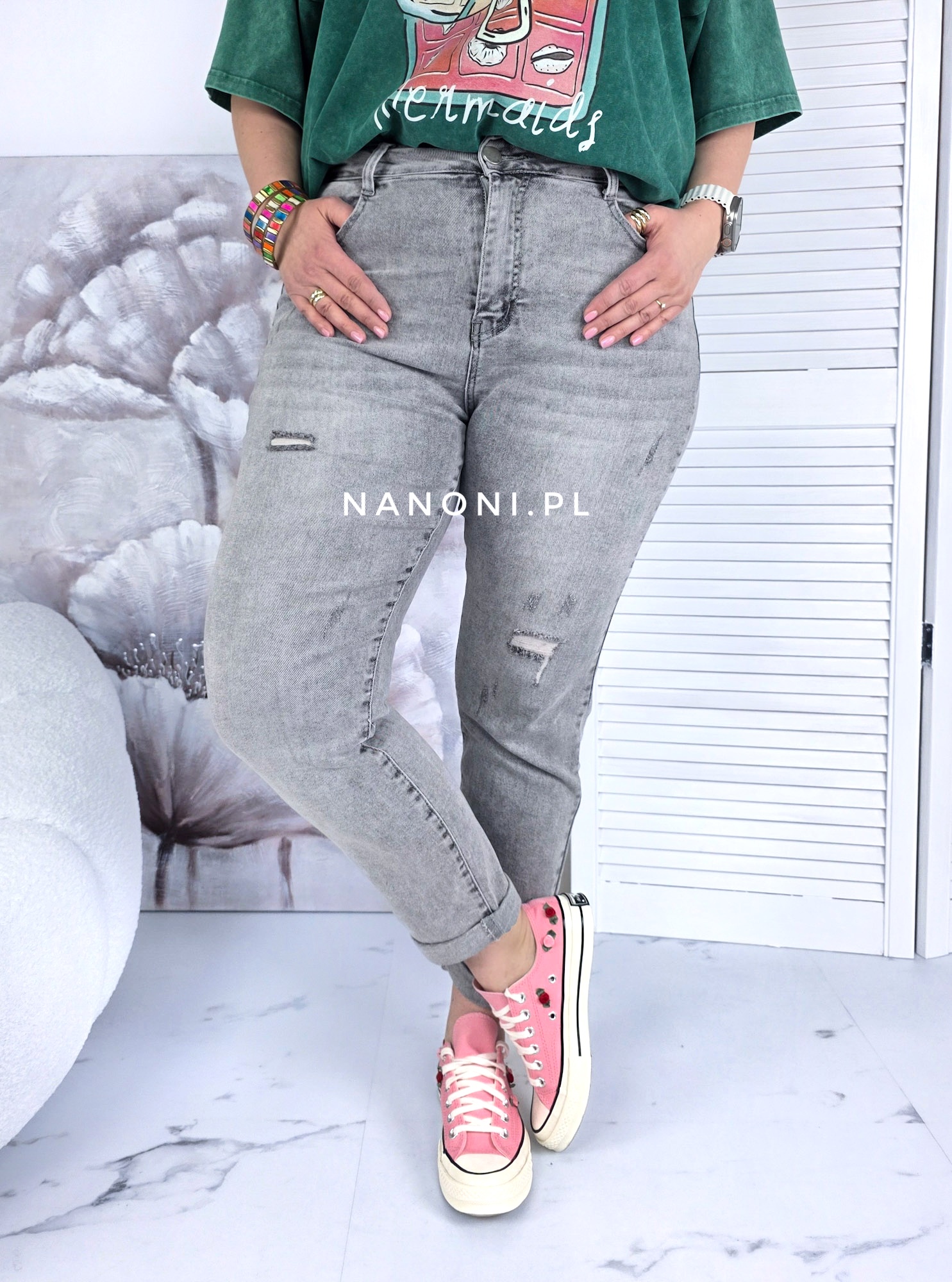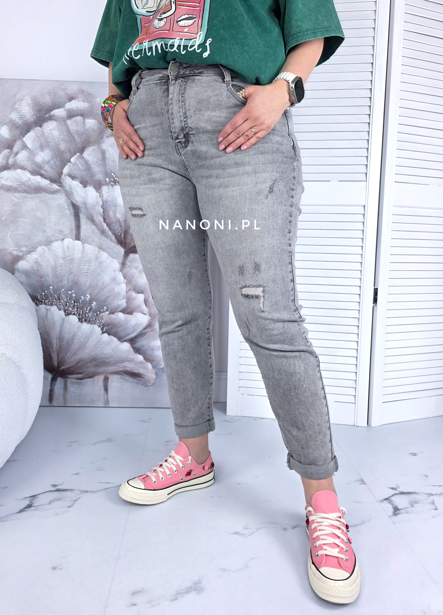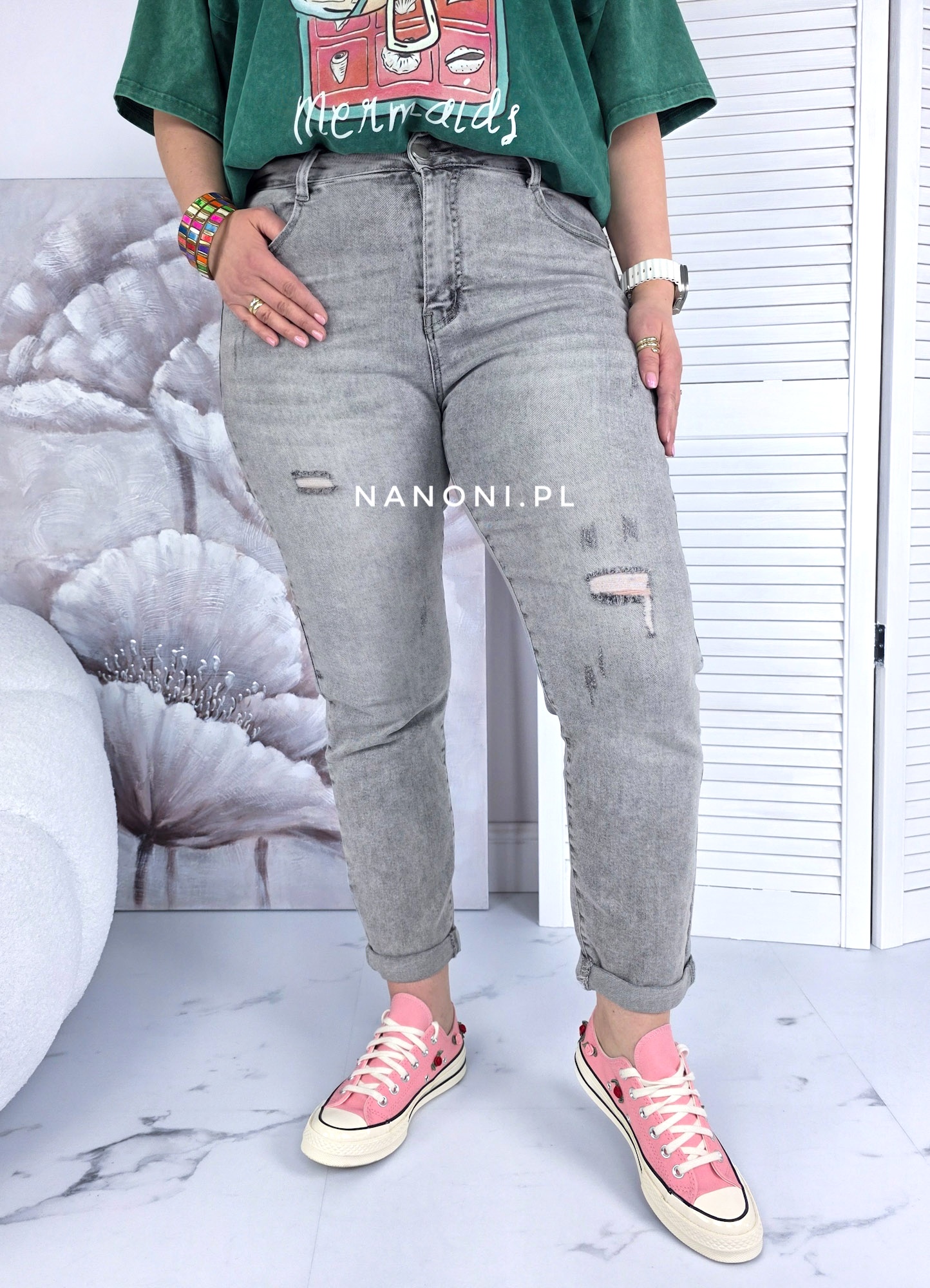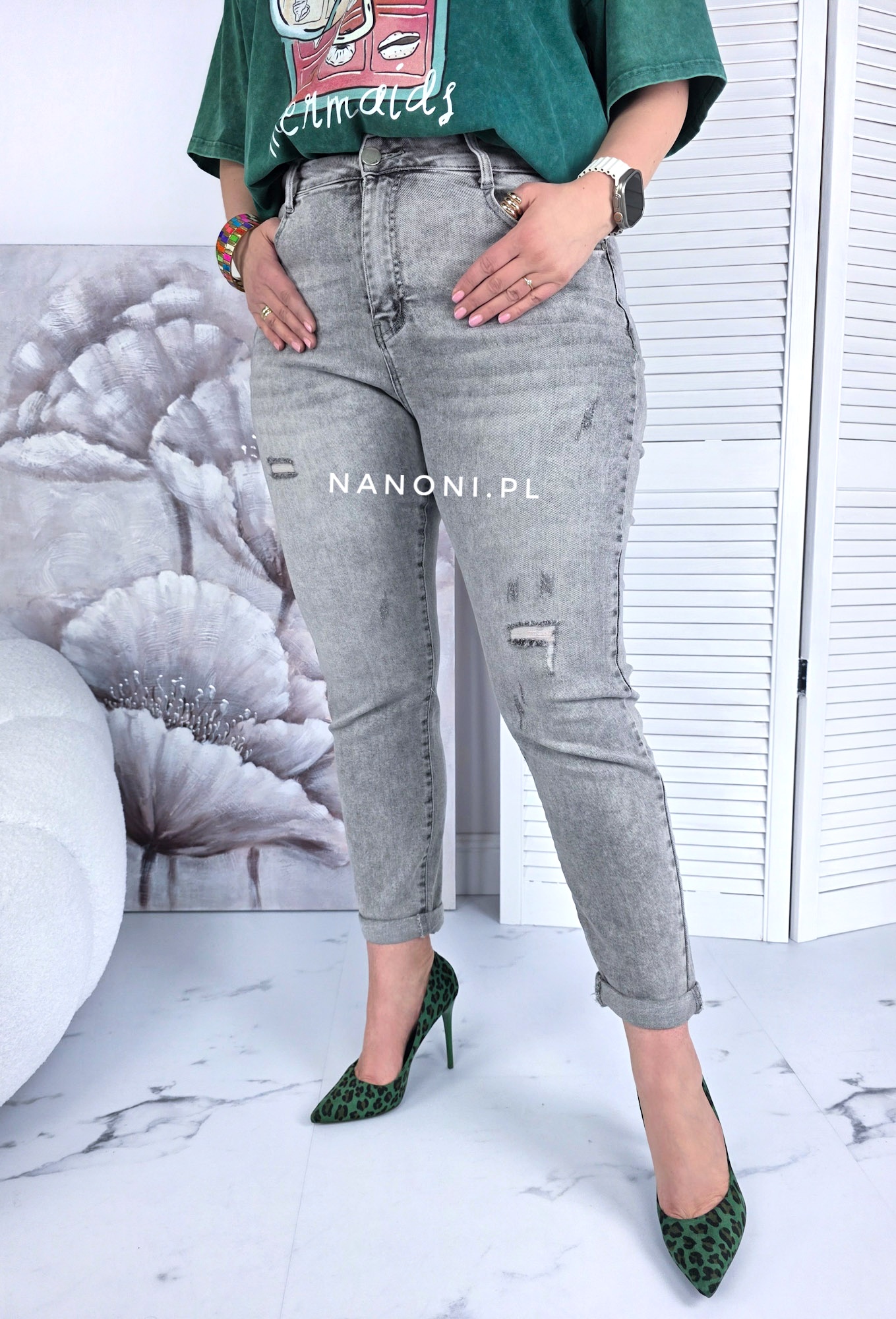 Spodnie Szare Jasne Plus Size Mom Fit 44-54 z Dziurami Nessa