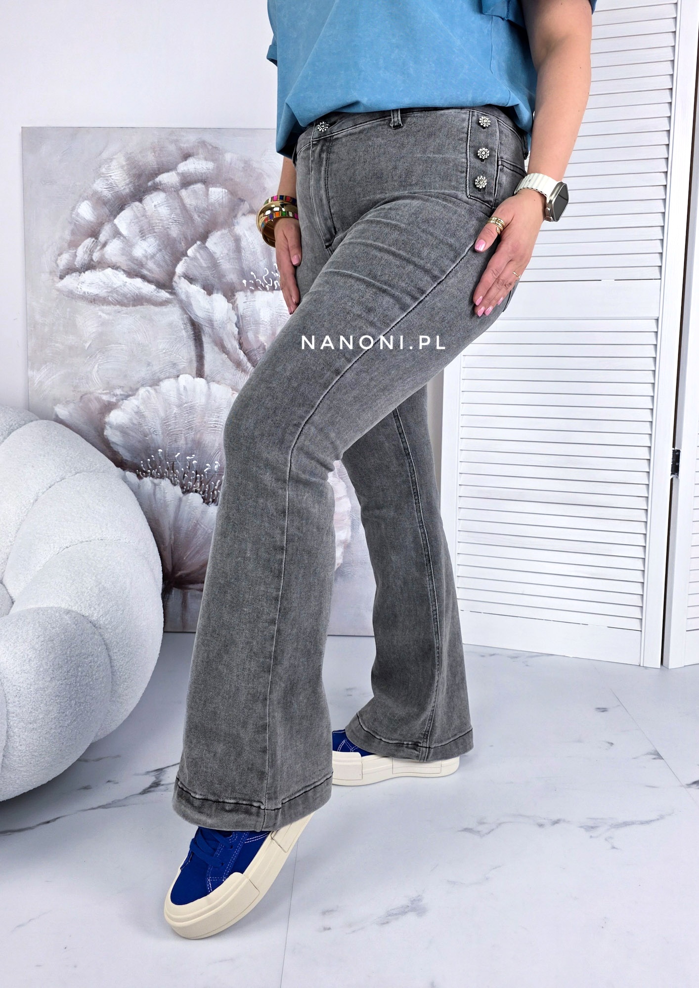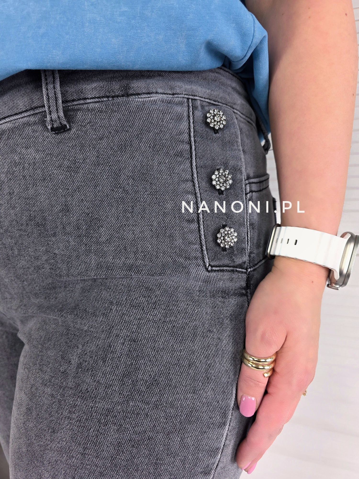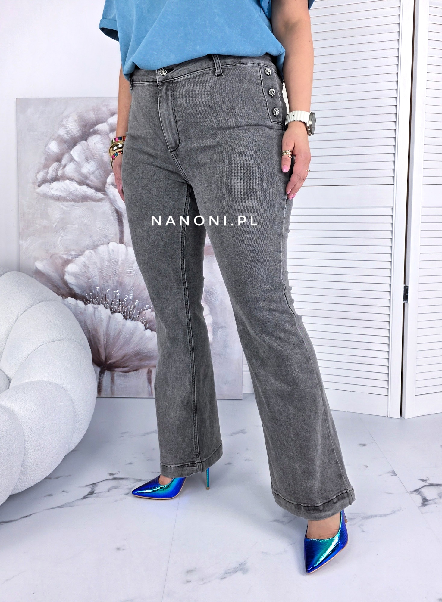 Spodnie Szare Jeansowe Plus Size Dzwony 44-54 Zdobione Tossi