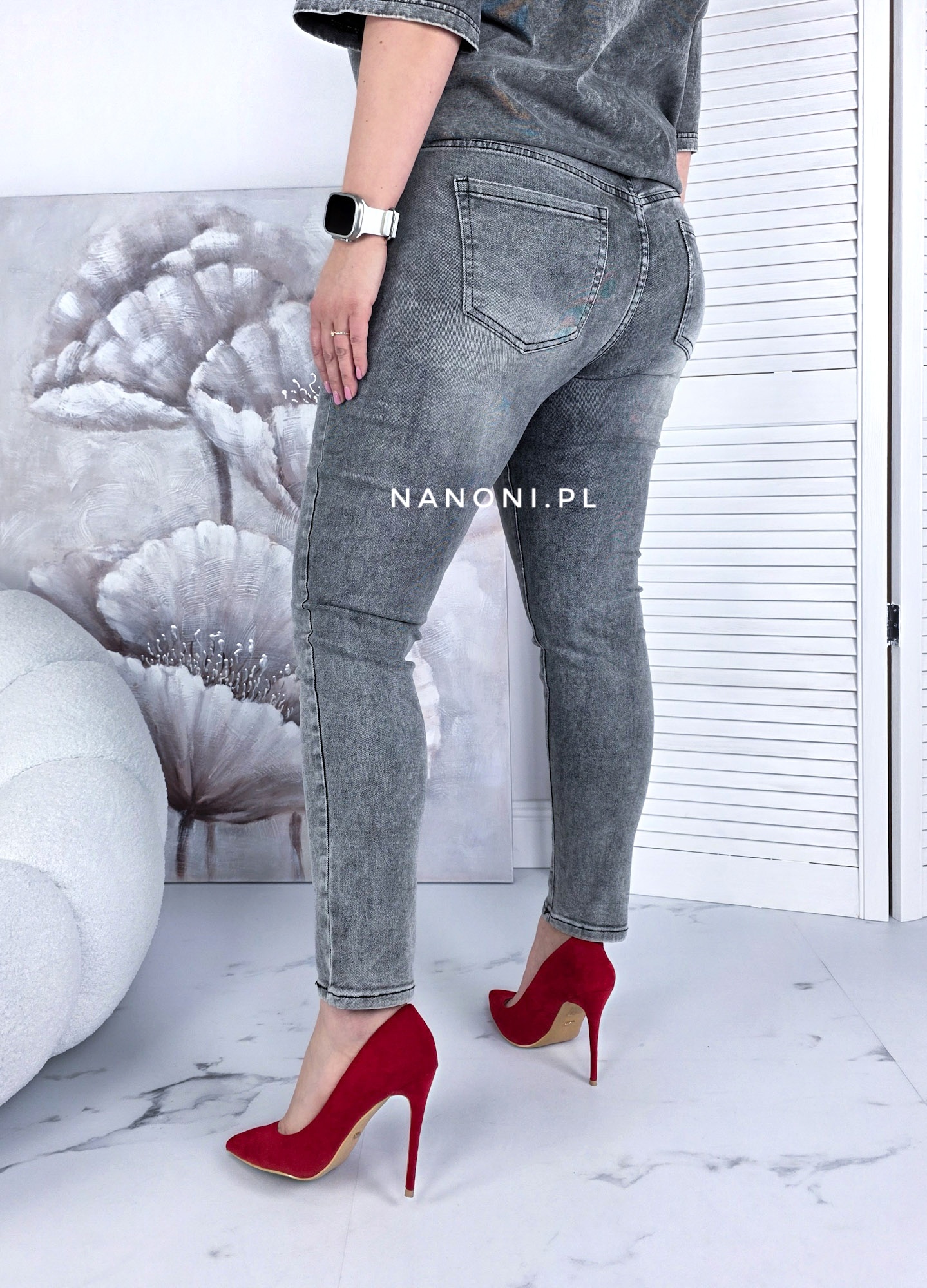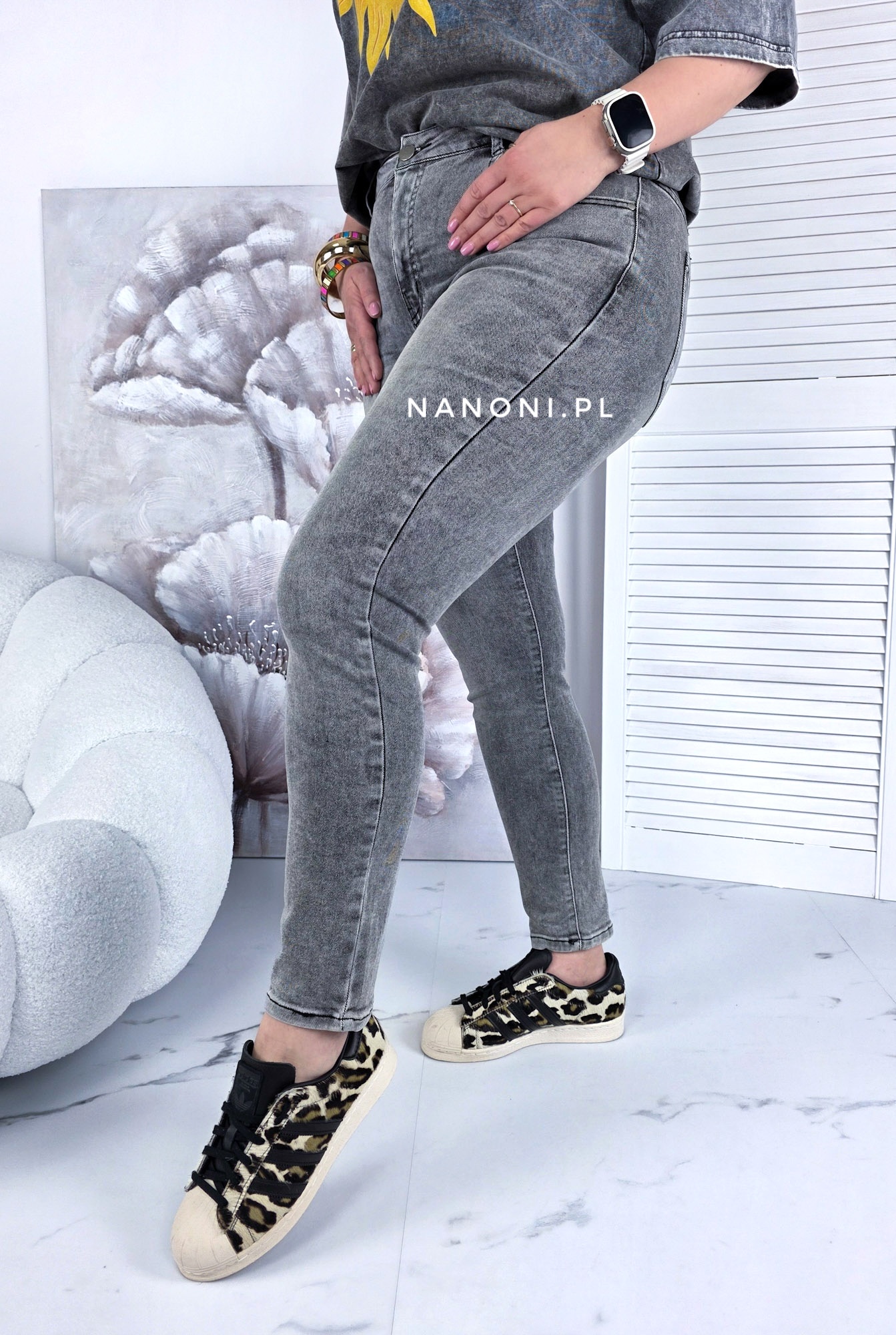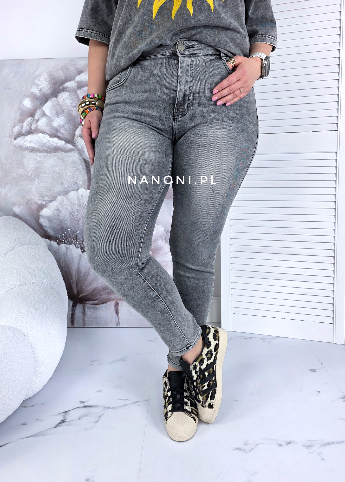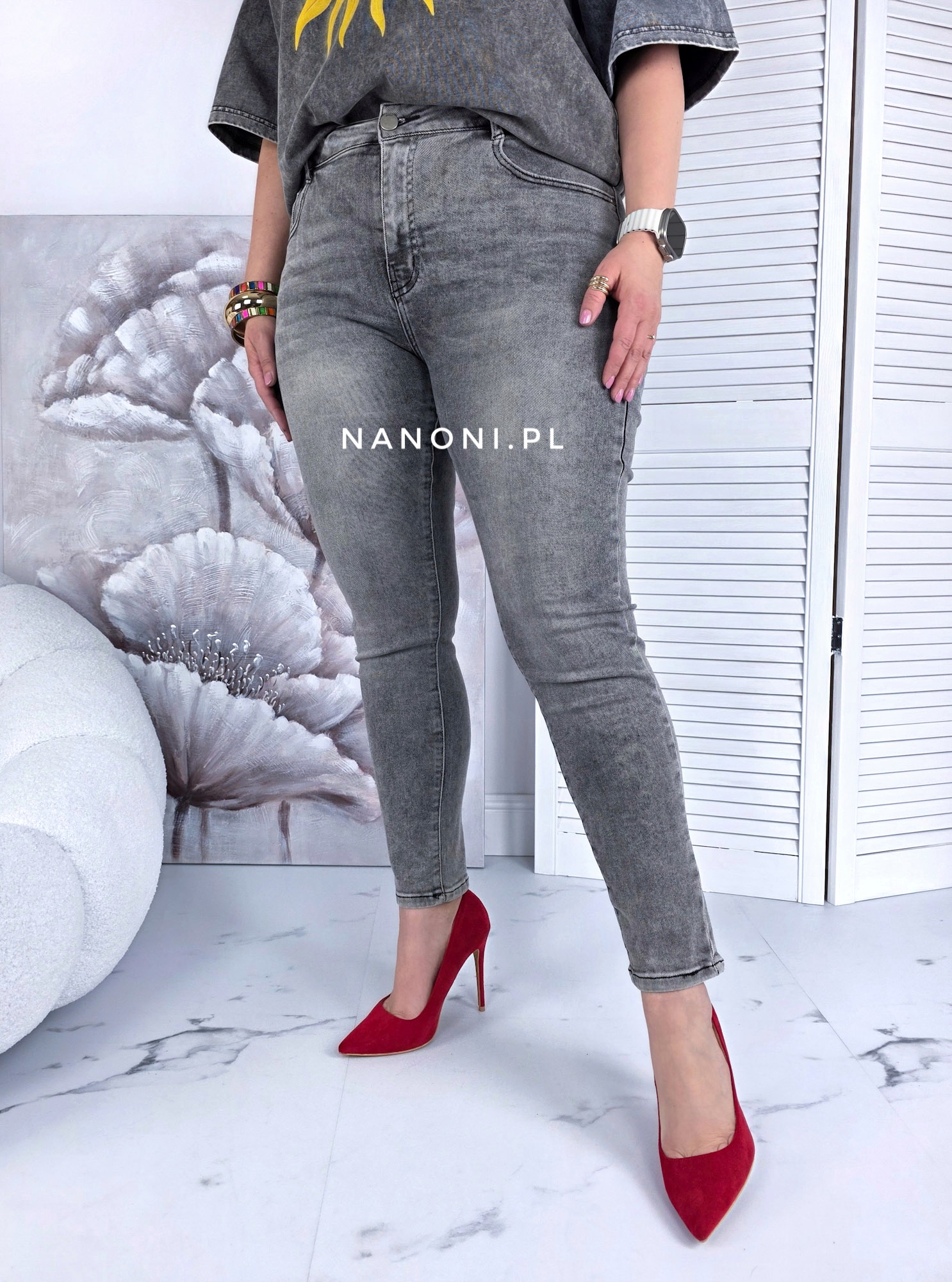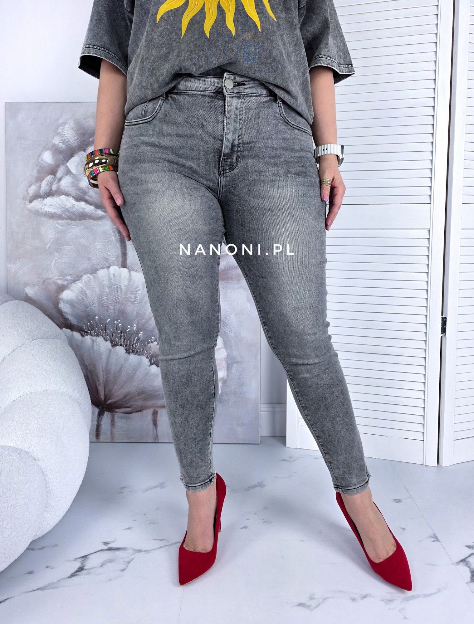 Spodnie jeansy rurki plus size szare, z wyższym stanem.